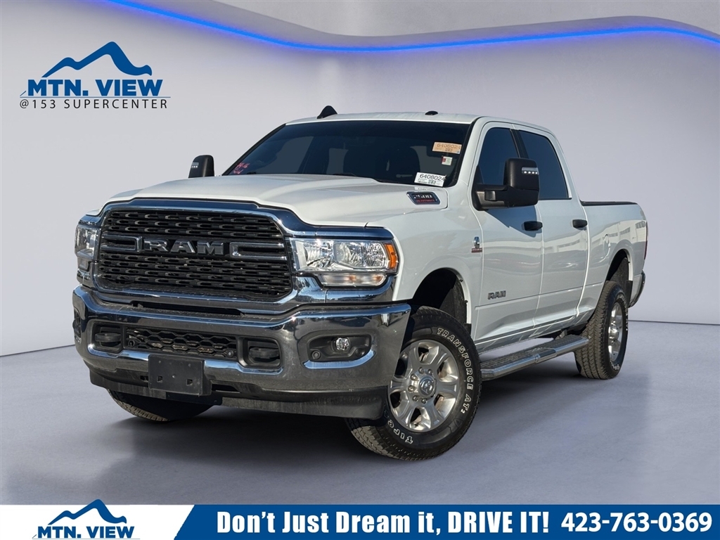CARFAX One-Owner. Certified. Clean CARFAX.2024 Ram 2500 Big Horn Bright White Clearcoat 4D Crew Cab 4WD Cummins 6.7L I6 Turbodiesel 6-Speed AutomaticBluetooth, Hands Free Phone, Service Records Available, Fully Detailed, We have all of your financing needs covered. Ask us how to get pre-approved today!, 2500 Big Horn, MTN VIEW CERTIFIED Certified, 4D Crew Cab, Cummins 6.7L I6 Turbodiesel, 6-Speed Automatic, 4WD, Bright White Clearcoat, Diesel Gray/Black Cloth, 2 Way Rear Headrest Seat, 220 Amp Alternator, 2nd Row In Floor Storage Bins, 3.73 Axle Ratio, 4 Way Front Headrests, 4-Wheel Disc Brakes, 40/20/40 Split Bench Seat, 4G LTE Wi-Fi Hot Spot, 6 Speakers, 8.4 Touchscreen Display, ABS brakes, Active Noise Control System, Air Conditioning, Anti-Spin Differential Rear Axle, Apple CarPlay, Auto Power-Folding Mirrors, Big Horn IP Badge, Black Exterior Mirrors, Bluetooth Handsfree Phone & Audio, Brake assist, Bumpers: chrome, Center Hub, Center Stack Storage Drawer, Chrome Flat Cab-Length Side Steps, Cloth 40/20/40 Bench Seat, Cold Weather Group, Compass, Connectivity - US/Canada, Delay-off headlights, Driver door bin, Dual front impact airbags, Dual front side impact airbags, Dual Glove Boxes, Electronic Stability Control, Electronically Controlled Throttle, Emergency communication system: SiriusXM Guardian, Engine Block Heater, Exterior Mirrors Courtesy Lamps, Exterior Mirrors w/Heating Element, Exterior Mirrors w/Supplemental Signals, Foam Bottle Insert (Door Trim Panel), Footwell Courtesy Lamp, For Details, Visit DriveUconnect.com, For More Info, Call 800-643-2112, Forward & Reverse Utility Lights, Front anti-roll bar, Front Armrest w/Cupholders, Front Center Armrest w/Storage, Front Center Seat Cushion Storage, Front Fog Lamps, Front License Plate Bracket, Front Performance Tuned Shock Absorbers, Front reading lights, Front Seat Back Map Pockets, Fully automatic headlights, Global Telematics Box Module (TBM), Glove Box Lamp, Google Android Auto, GPS Antenna Input, Heated door mirrors, Heavy Duty Snow Plow Prep Group, Hill Descent Control, Illuminated entry, Integrated Center Stack Radio, Integrated Voice Command w/Bluetooth, Leather Wrapped Steering Wheel, Level 1 Equipment Group, Locking Lower Glove Box, Low tire pressure warning, Manual Adjust 4-Way Driver Seat, Manual Adjust 4-Way Front Passenger Seat, Mirror Running Lights, MOPAR Spray In Bedliner, MOPAR Winter Front Grille Cover, Occupant sensing airbag, Off Road Package, Outside tempe